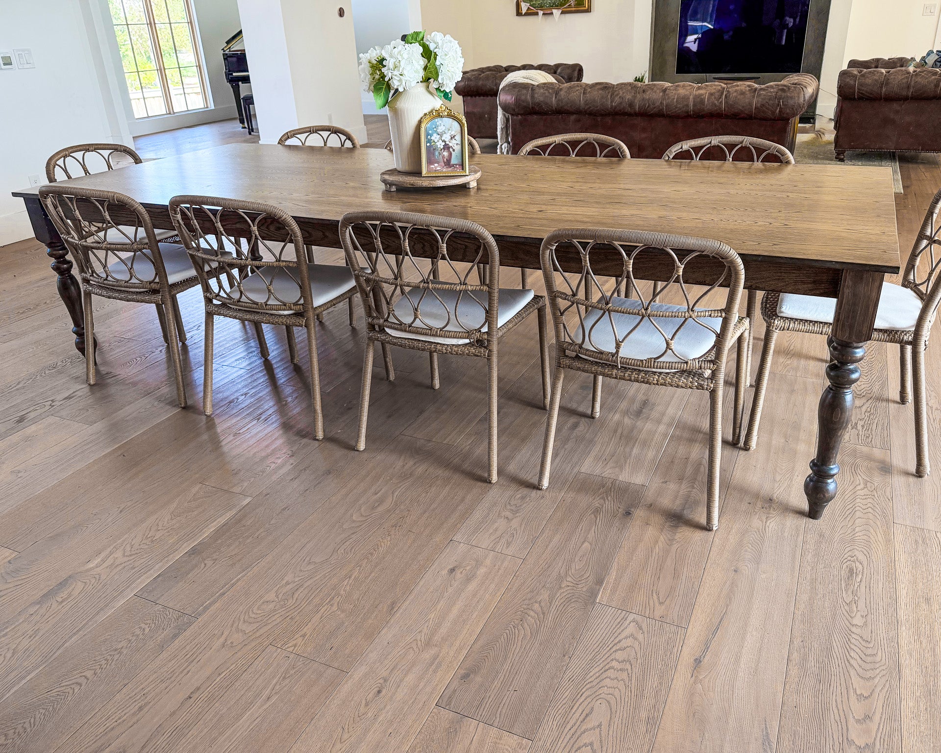 The table pictured is a 10' x 4' oak dining table built in traditional style.