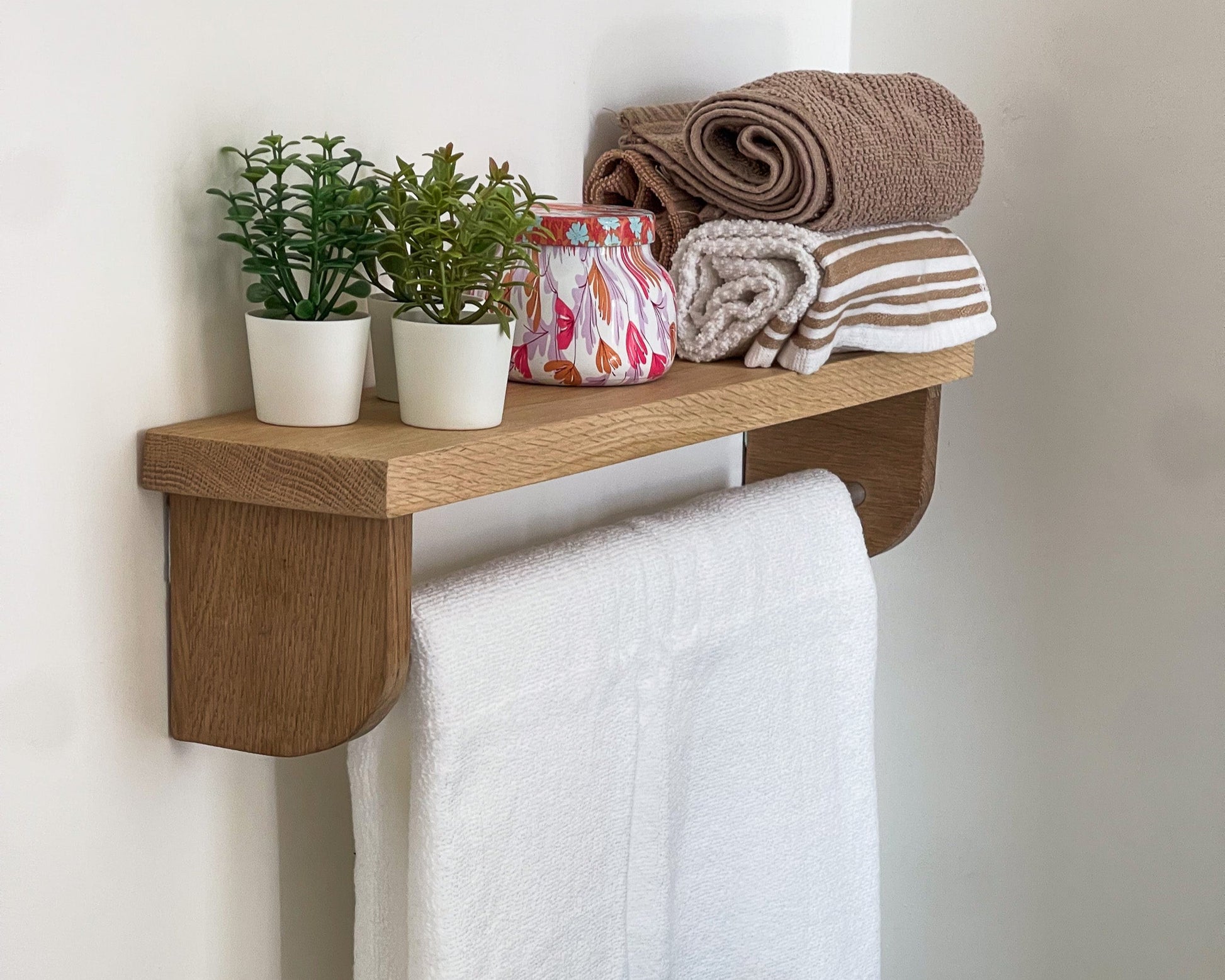 A solid and sturdy place to hang your towel -- with a built-in décor shelf.